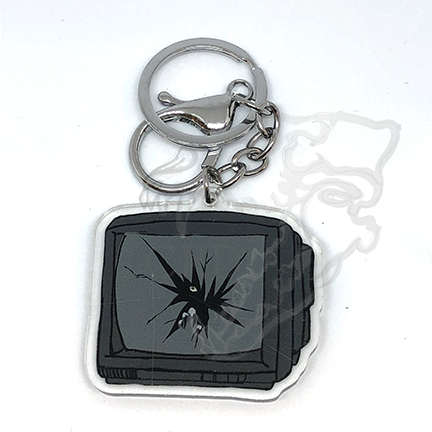 — CRT Visitor is a 2" double-sided acrylic charm, attached to a keyring and a lobster clasp.
